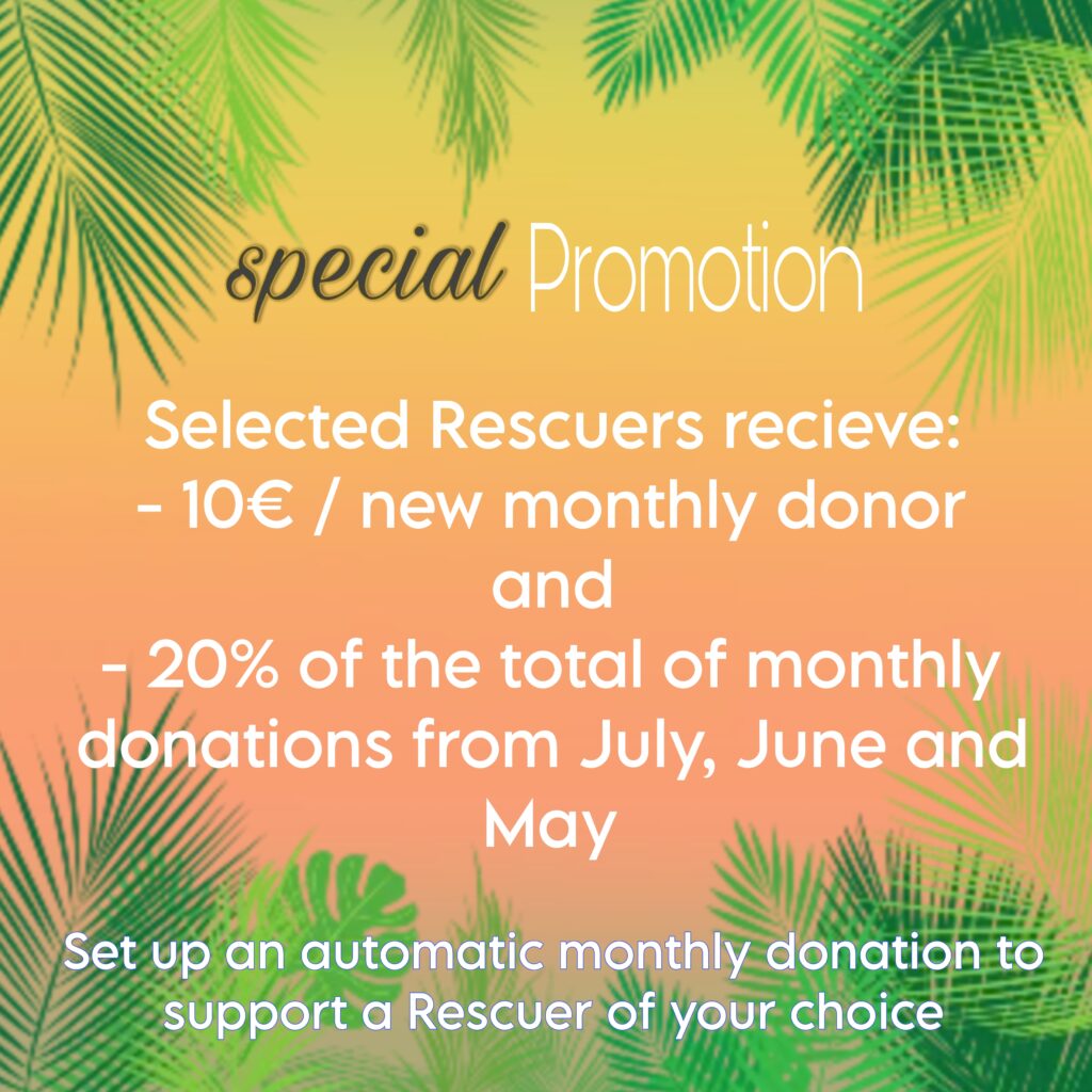 A number of Rescuers are selected, who will receive extra money at the end of the month for new automatic monthly donations that have been set up in this month and for already existing monthly donations.