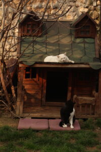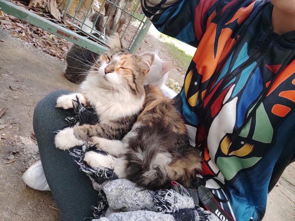 There were demanding cuddly cats, who would meow at me for attention and demand pets whenever I entered their shelter, curious mischievous cats, trying to follow me around (one blue eyed white cat in the bigger shelter was especially curious and managed to slip through the doors a lot) and timid ones, who would hurry to get away from me or hiss at me (understandable, seeing as from their perspective I was the stranger who invaded their space).