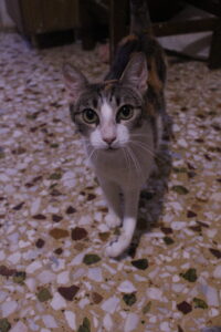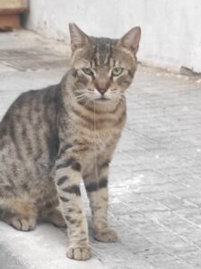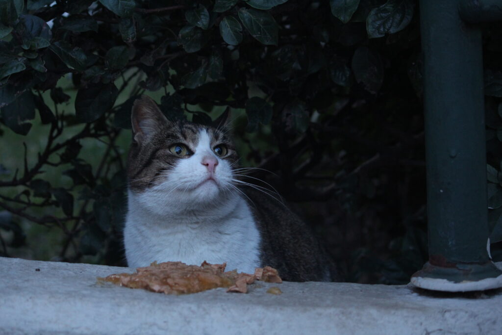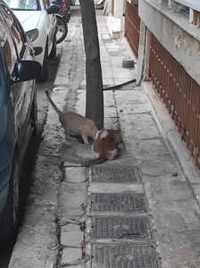 Generally there were a lot of stray cats in Nikea compared to the center of Athens or Piraeus (although that might also have to do with the time of day that we usually visited those areas vs walking to and from the shelters rather late at night in Nikea). Many of the cats that we saw were already neutered, but there were also the apparently unneutered mother cat of Fred and Georgina, another pregnant stray cat and more young looking cats (a few months old, but visibly not fully grown), who would still need to be neutered. There were cats that were visibly hungry or would have benefitted from vet care (I saw two cats that seemed to have teeth problems, with a high likelyhood of more cats having problems that were just not as easily visible).