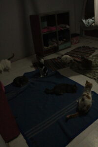 She had around 17 cats and one dog living with her, and recently some of the cats seemed unhappy about the newest additions (not because of the new cats themselves, but rather generally because of the increase in the total number). Birben and I talked about potential ways to mitigate the problem and help the cats feel more comfortable.