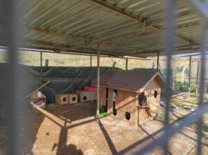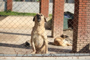 We immediately stood in a yard, surrounded by kennels. The kennels were about 3m x 3m in size with a door leading to an inside kennel (I assume of similar size, but I could not see it well enough). About 100 dogs were eager to greet their 4 visitors. They came running to the front of their kennels, barking, and standing up, with their front paws on the fence in front of them. Most dogs were large dogs with light white to caramel colored fur. I also noticed some kennels with puppies. Most of the kennels seemed to house 4-6, maybe 7 dogs.