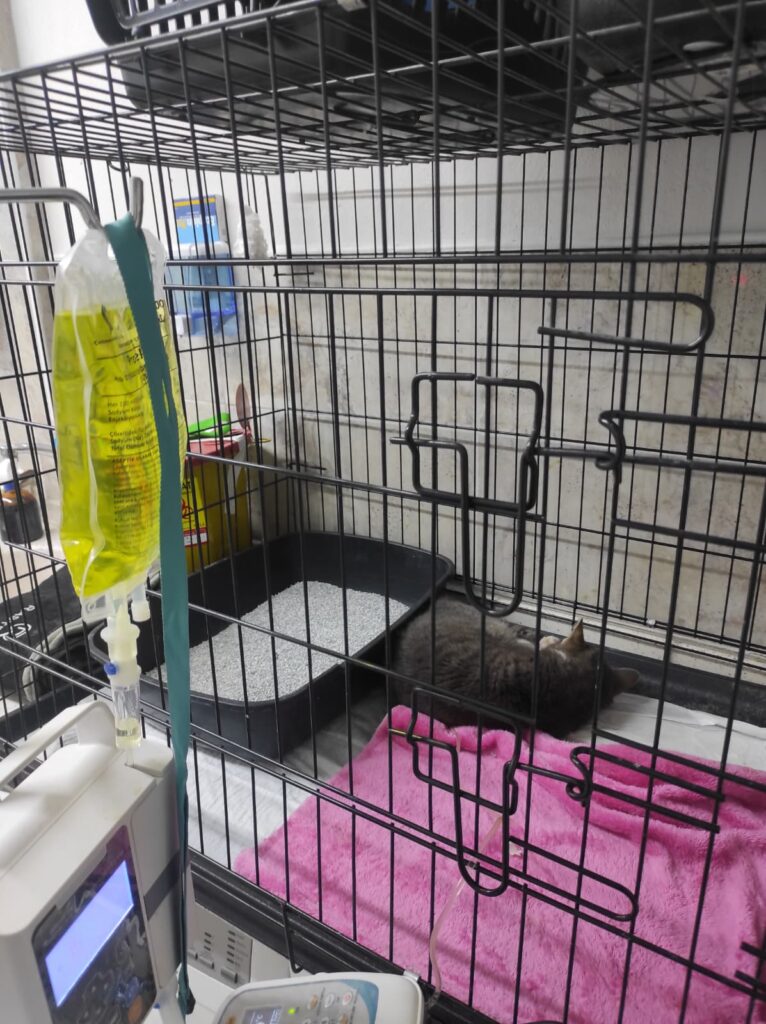 That day, she was a bit more lively (she could take a few uncertain steps), but also hypothermic despite having received heated serum. The second vet could finally draw blood and wanted to repeat some of the tests. The blood results pointed towards FIP, despite the initial negative test result for FCoV. Her kidney and liver values were elevated and her calcium was low. Her treatment was intensivised, and new medication added for the new diagnosis.Meral was kind enough to help me organize getting the new medication, so that Cali could be treated as best as possible as per the advice of the veterinarian.
